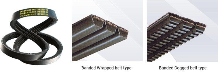 Banded Belts: HA,HB, HC, HD, HSPZ, SPA, SPB, SPC, 5J/R3V, 15J/R5V,25J/R8V,R3VX, AX, BX, CX, 3VX, 5VX, 8VX, 3V, 5V, 8V, DELTA